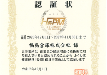 2025.12.19ふくしま健康経営「長期」優良事業所2025に認証されました。